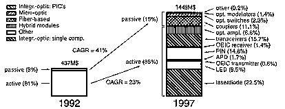 A search among the patents related to the optical switching filled in the USA from January 1997 to March 1998 gives 167 hits. Here is a short list of the company that have filled patents relating the realization of an optical switch (the number of patents filled and the type of switch is described in the parenthesis):