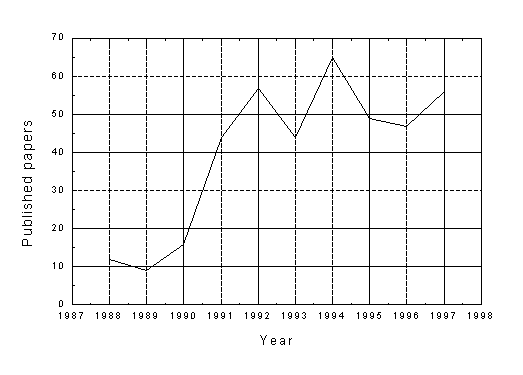For the years 1995, 1996, and 1997 we have also studied in more detail the proposed architectures and classified them according to the type of the developed switch. In this study we have rejected all the paper that did not present a real switch. This has reduced the number of paper to 45 from more than 150 that had ‘optical switch’ as keywords…