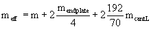 We have to calculate the effective mass for the springs taking into account that their speed vary along their length. For a mass supported by two folded-beam springs with L1=L2=L, the integration yield:
